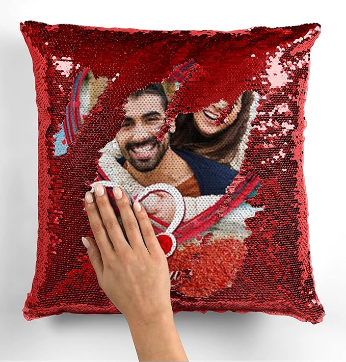 MUKESH HANDICRAFTS Polyester Personalised Magical Photo Cushion For Gifting On Anniversary Birthday Size :- 12X12 Inch (Red)